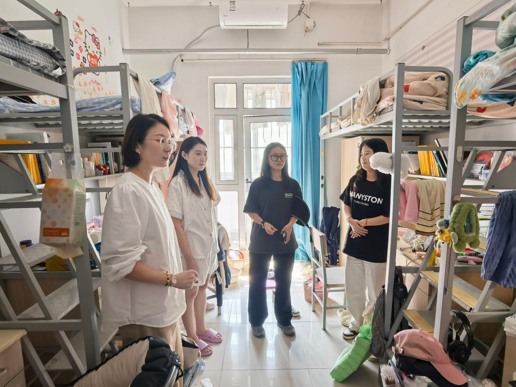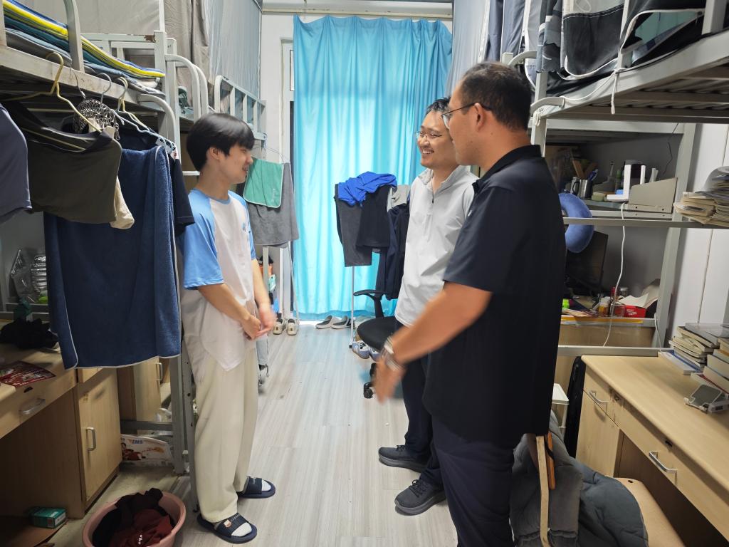 学院全体辅导员与班主任深入学生宿舍开展走访慰问,详细了解同学们假期的安排与需求,逐一叮嘱离校同学做到断电关窗、注意旅途安全,提醒留校同学增强防火防盗意识,合理安排学习生活,保持良好作息。